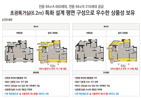 전용면적 84㎡B 316세대로 구성이 되어 있습니다.