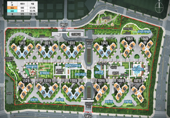 전용면적 84㎡ 단일면적, 총 976세대로 공급되는 아파트입니다.