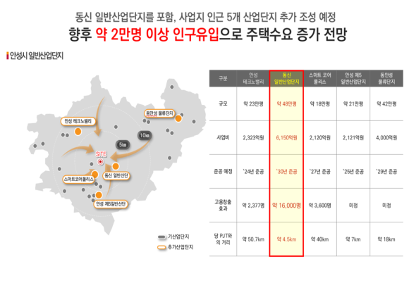 단지 인근에는 동신 일반산업단지가 조성될 예정으로, 반도체 소·부·장 특화단지로 지정되어 약 1.6만 명의 고용 창출이 기대됩니다. 이는 지역 경제 활성화와 함께 직주 근접성을 강화하여 실수요자들에게 높은 매력을 제공합니다.