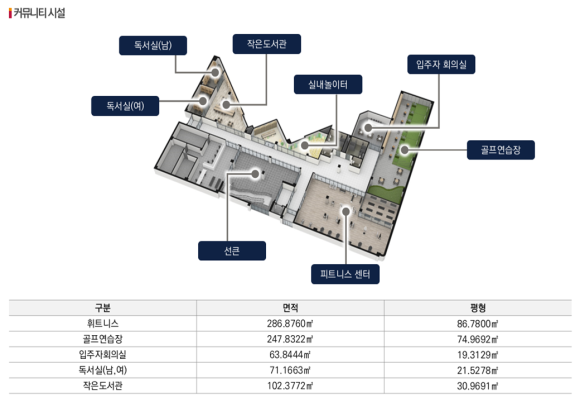 다양한 커뮤니티 입주민의 건강을 생각한 피트니스센터, 골프연습장, GX룸, PT룸 등 운동시설과 키즈하우스, 시니어클럽, 다함께돌봄센터, 맘스카페, 주민카페, 작은도서관 등 입주민의 품격을 높여줄 다채로운 커뮤니티 시설이 마련됩니다.