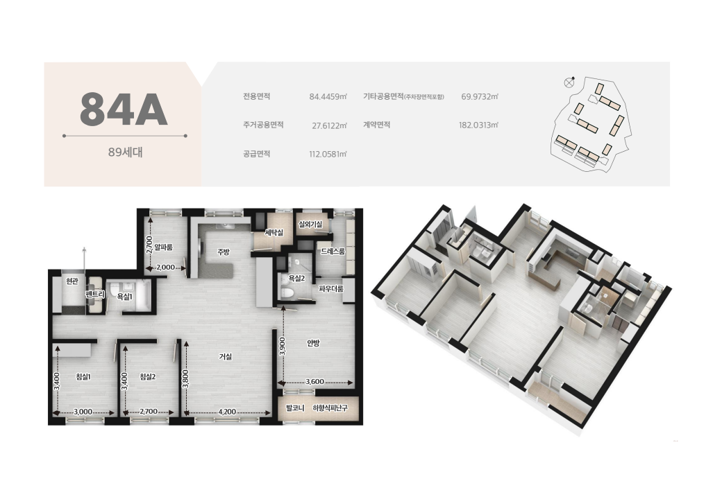 59㎡, 84㎡ 등 중소형 평형 위주로 실수요자에게 적합한 구성입니다.