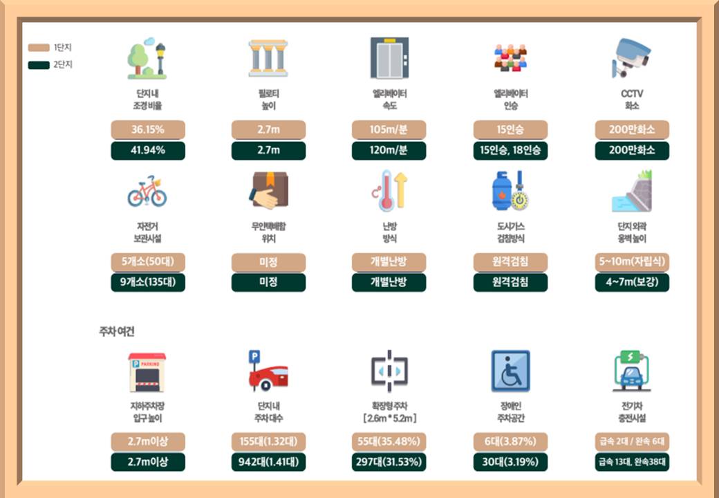 세대당 1.4대 이상의 주차 공간이 확보되어 차량 보유자에게 매우 편리한 환경입니다.