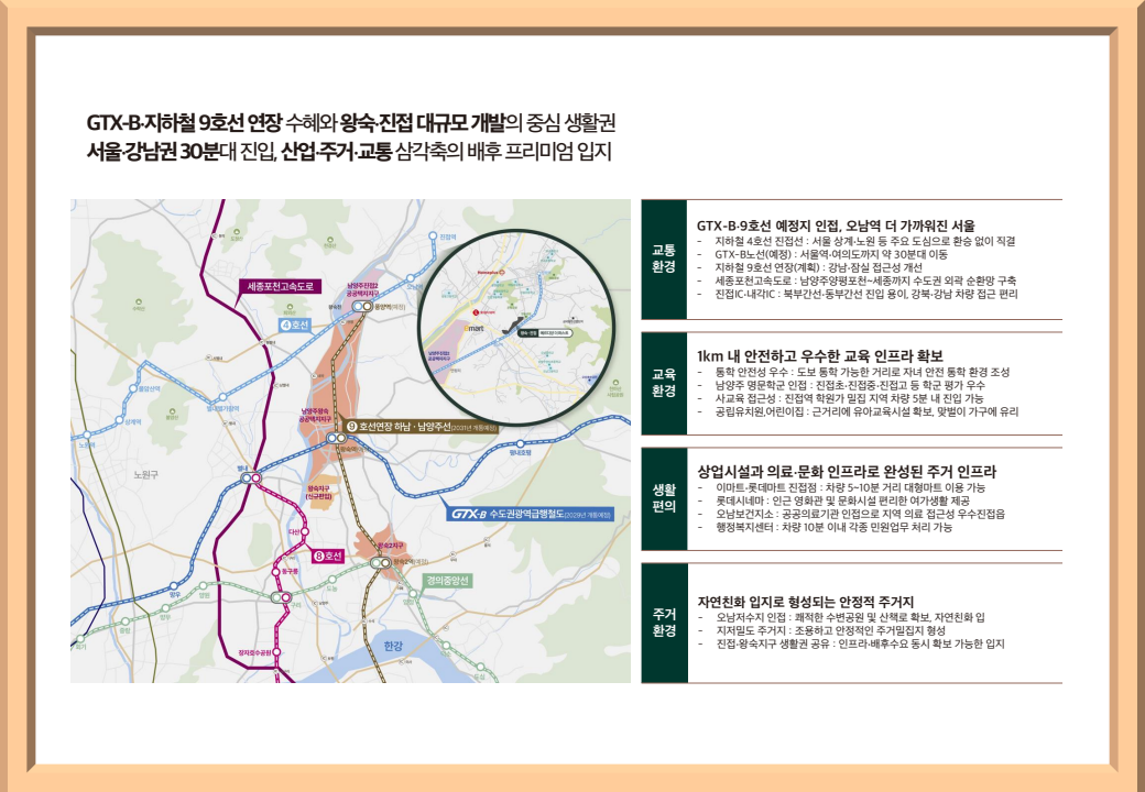 왕숙신도시와 인접한 입지로 개발 프리미엄과 인프라 확장 수혜를 동시에 누릴 수 있습니다.