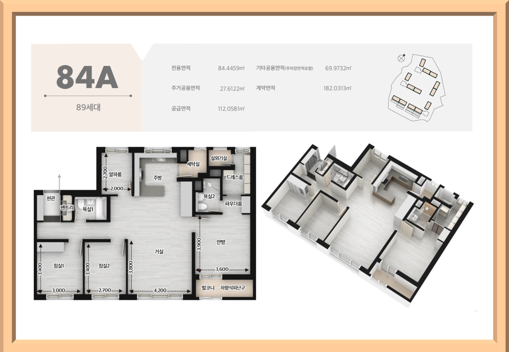 59㎡~92㎡까지 다양한 타입으로 구성되어 신혼부부부터 중대형 가족까지 모두 만족시킬 수 있습니다.