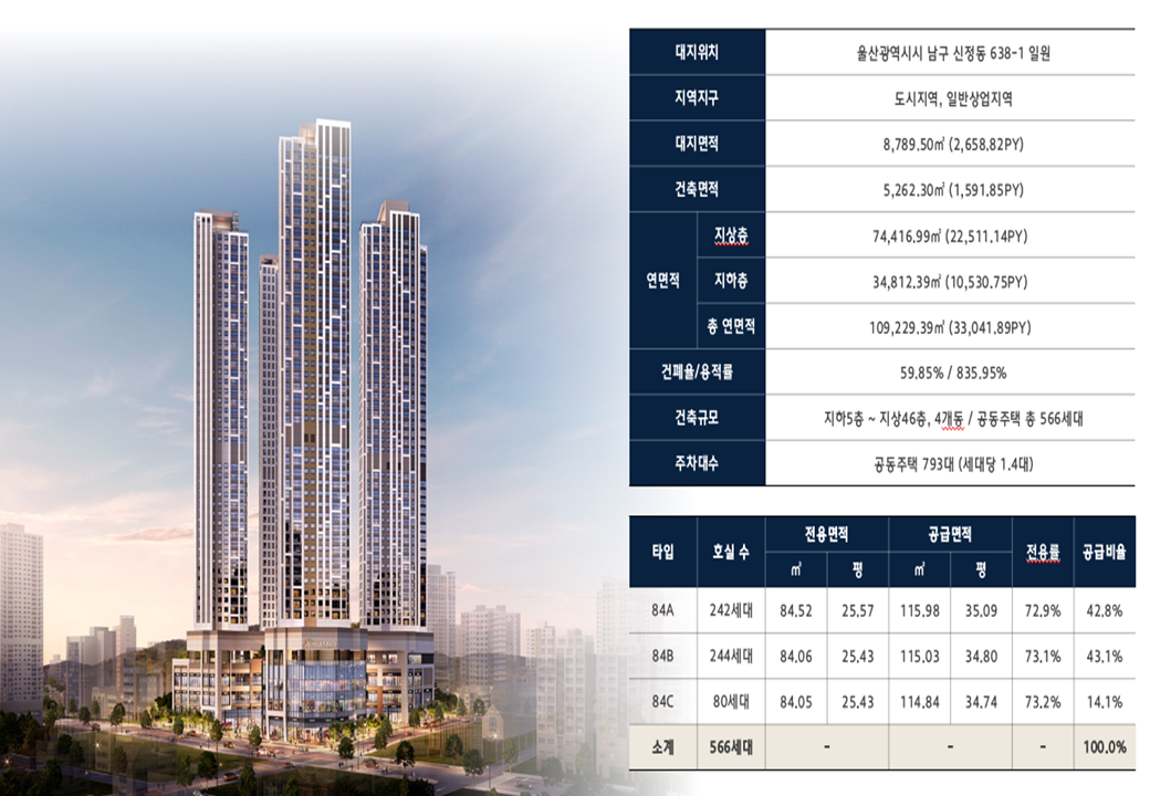 지상 46층 규모로 울산 남구의 새로운 스카이라인을 형성합니다.
