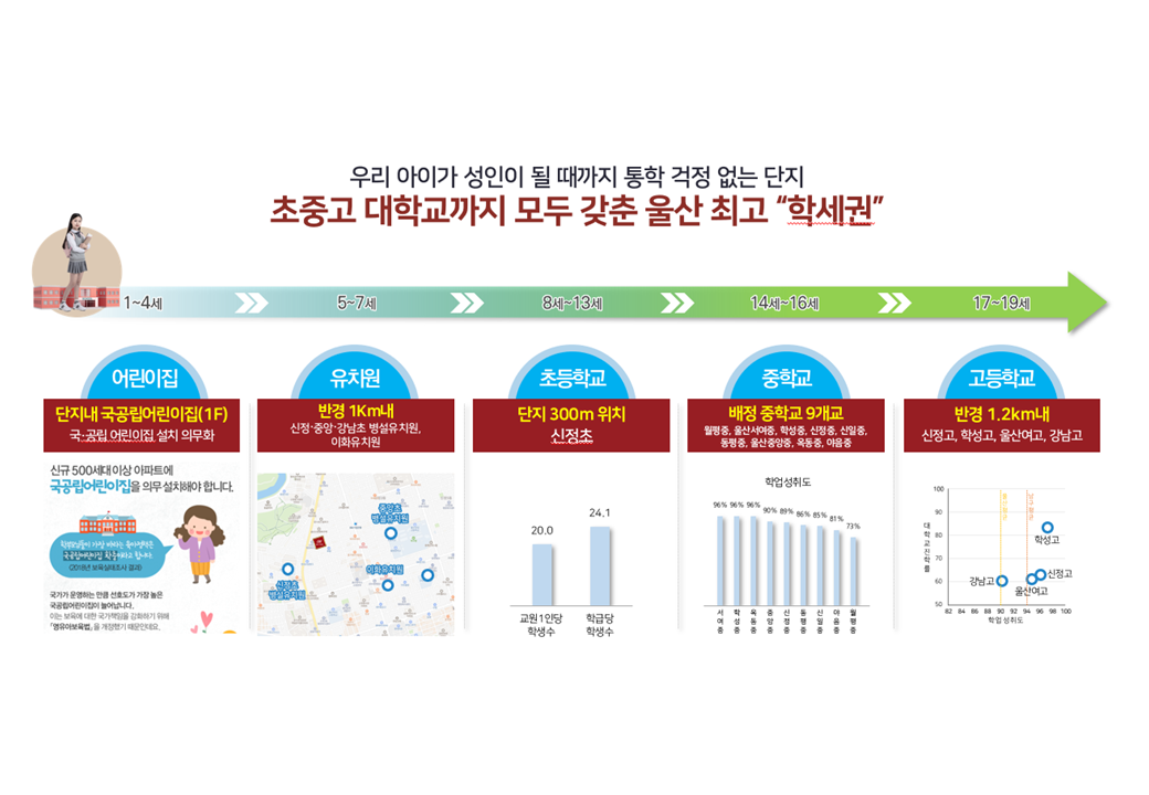 울산광역시 남구 신정동 문수로 중심에 위치하여 생활과 교통 모두 편리합니다.