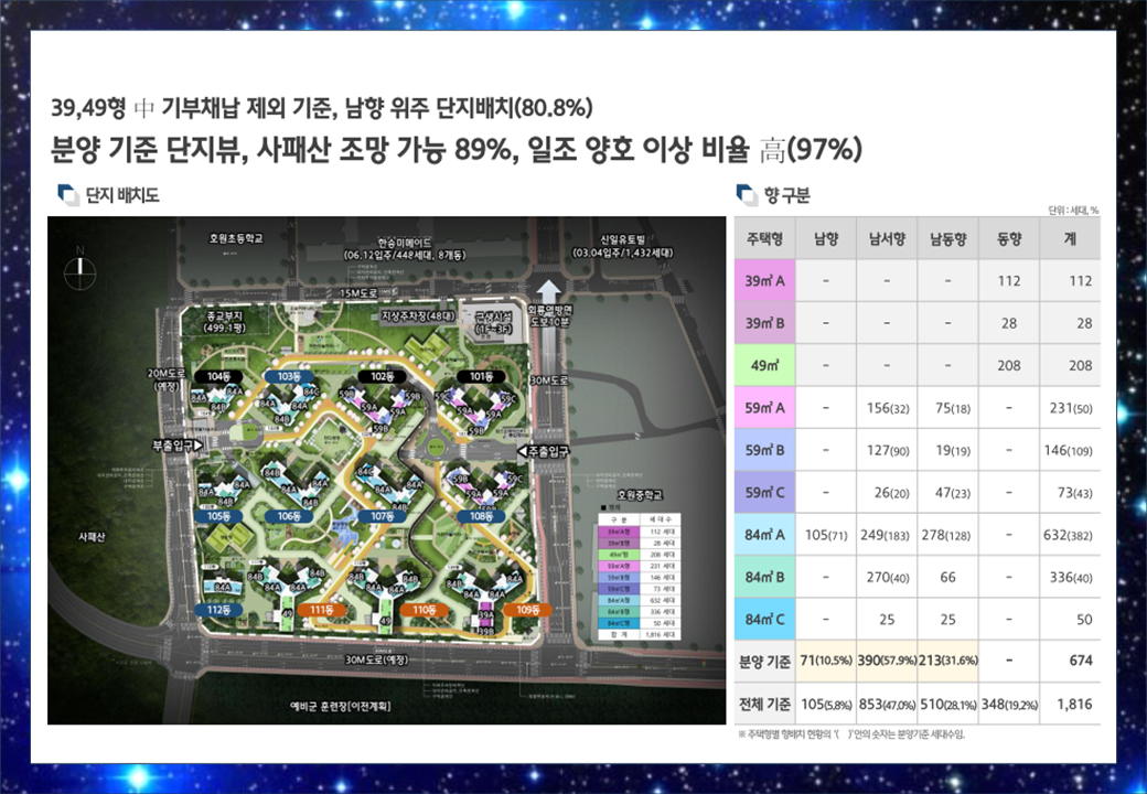 실속 있는 평형 구성 전용 59㎡와 84㎡ 중심으로, 신혼부부부터 중소가족까지 다양한 수요층이 만족할 수 있는 국민 평형으로 구성되어 있습니다.