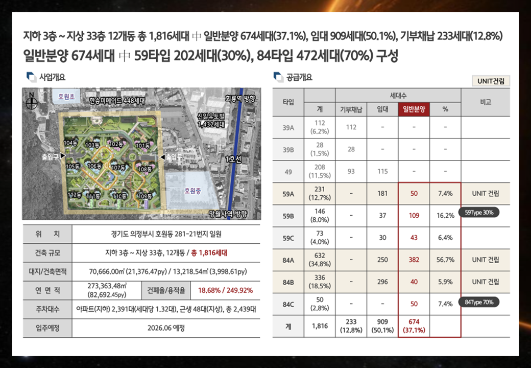 정부 호원동 20년 만의 대단지 총 1,816세대 규모의 초대형 단지로, 지역 내 희소성이 높습니다. 대단지 특유의 커뮤니티 시설과 브랜드 프리미엄이 실수요자와 투자자 모두에게 안정적인 가치를 제공합니다.