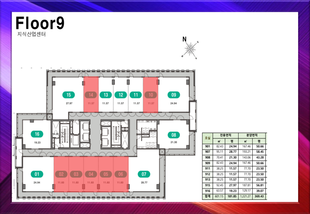 효율적 건축 설계 지하 5층~지상 15층 규모로, 층별 발코니와 시스템 냉난방 등 입주 기업의 편의를 고려한 설계가 적용되었습니다.